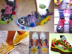 Grab an old, used pair of closed in shoes (no school shoes) and/or socks and let your imagination go wild! Decorate with ribbons, buttons, paints, stickers or anything handy at home, or wear colourful socks, team colour socks, anything different.
