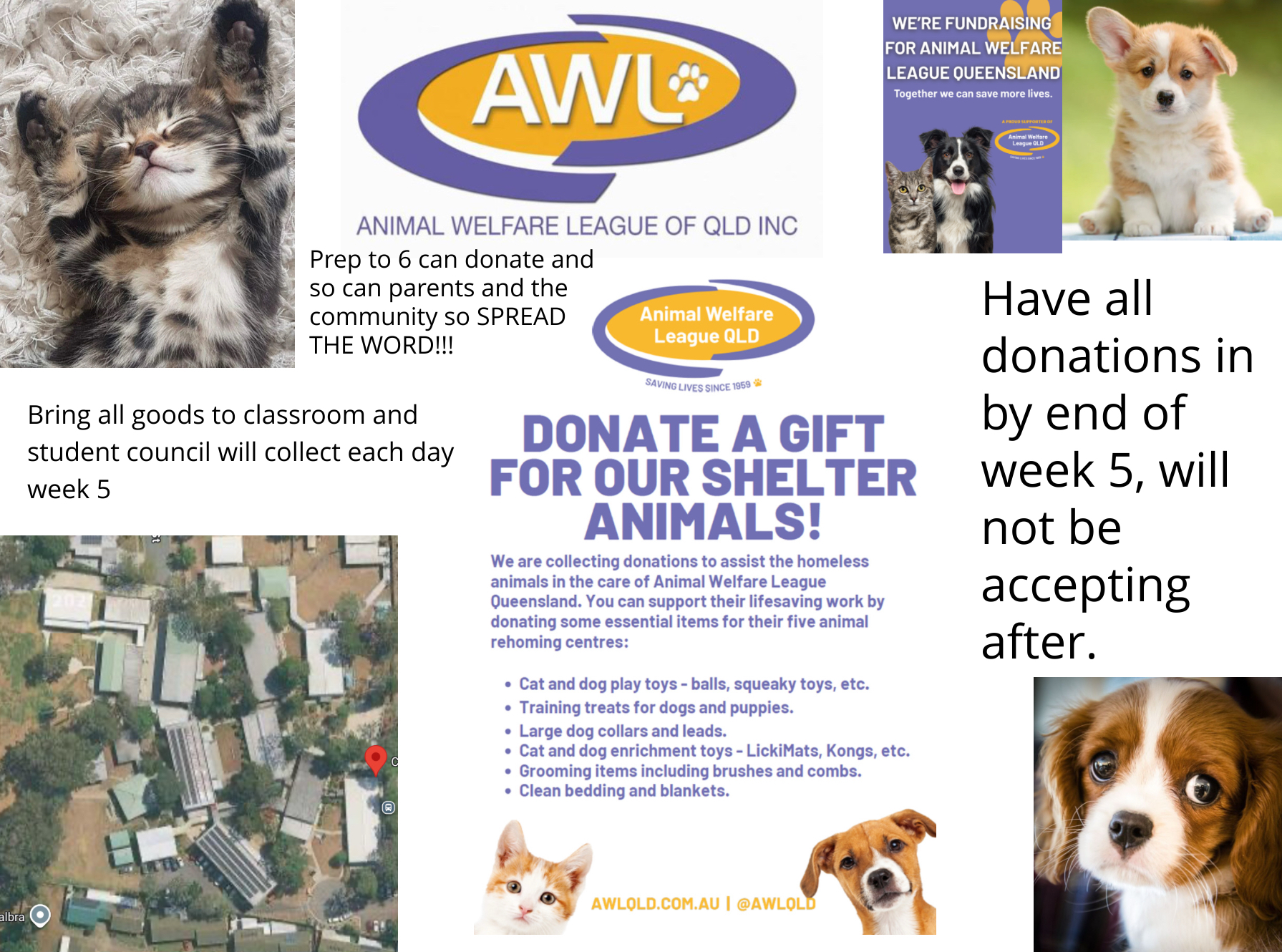 The student council are holding a donation drive for the Animal Welfare League at Coombabah.