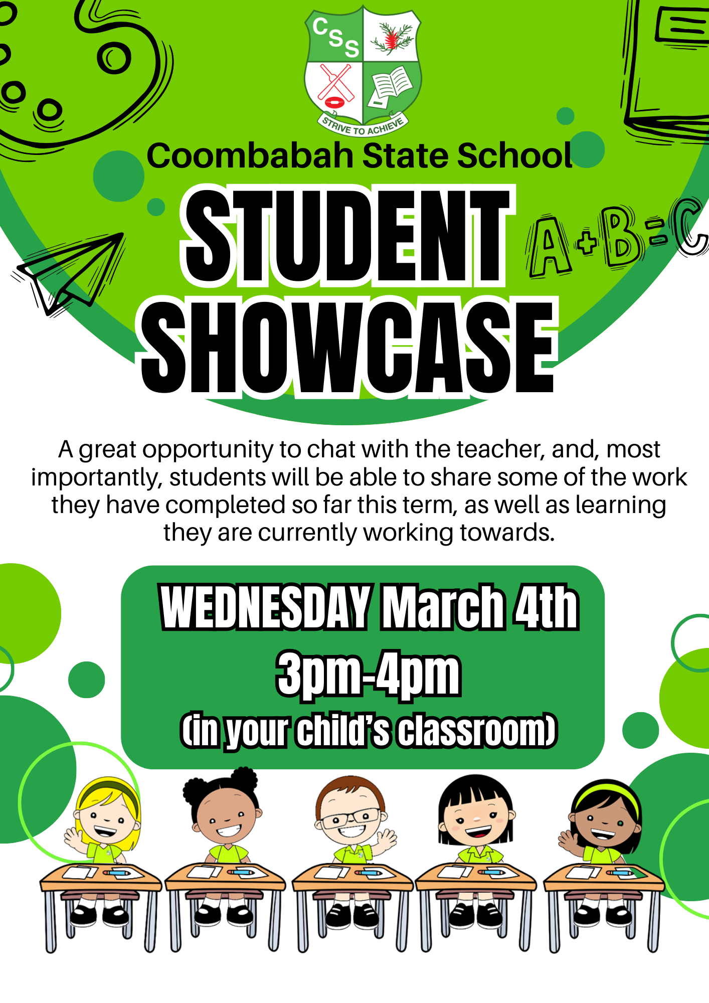 Wednesday March 4th is our Student Showcase from 3-4pm.